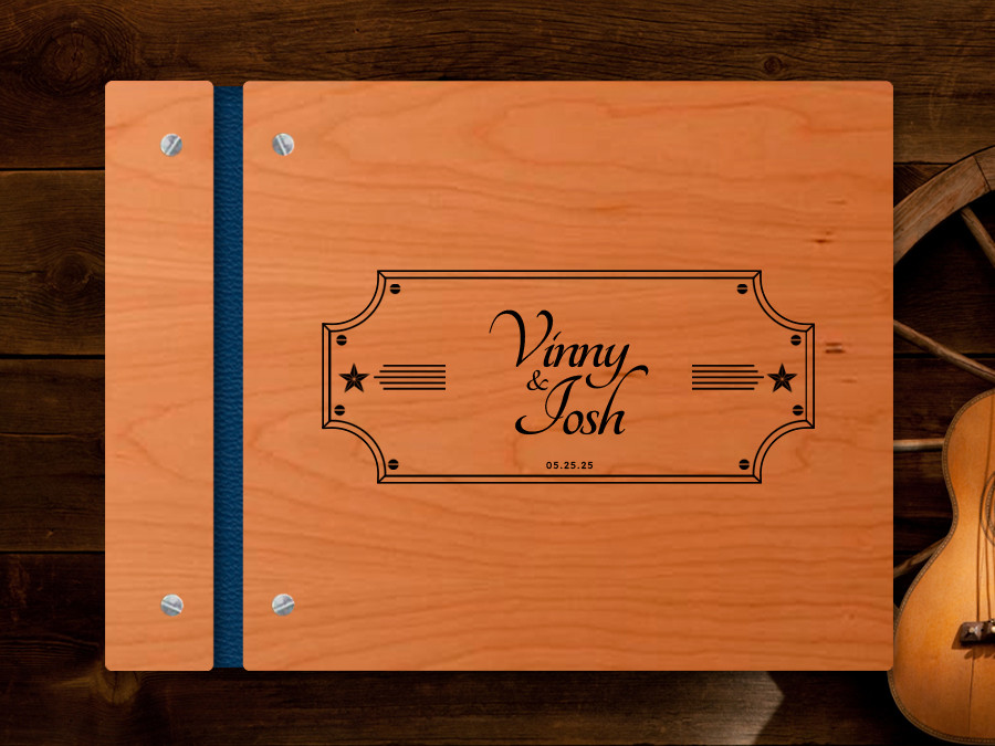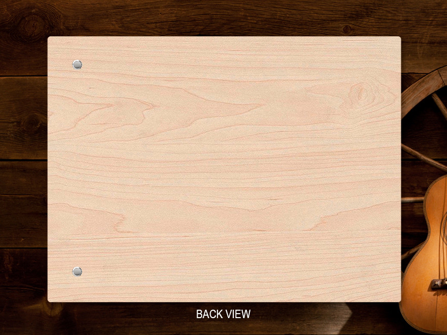 Choose Cherry or Maple (1/8 wood veneer with MDF core) and your hinge color (vegan leather), then add your details in the customization area. A proof will be sent to you for approval prior to beginning your order.