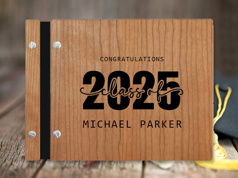 This 9 x 12 inch wood with vegan leather live hinge custom book is laser engraved with your unique details, making it a one-of-a-kind keepsake. Ideal for creating a Polaroid-style photo albums.
